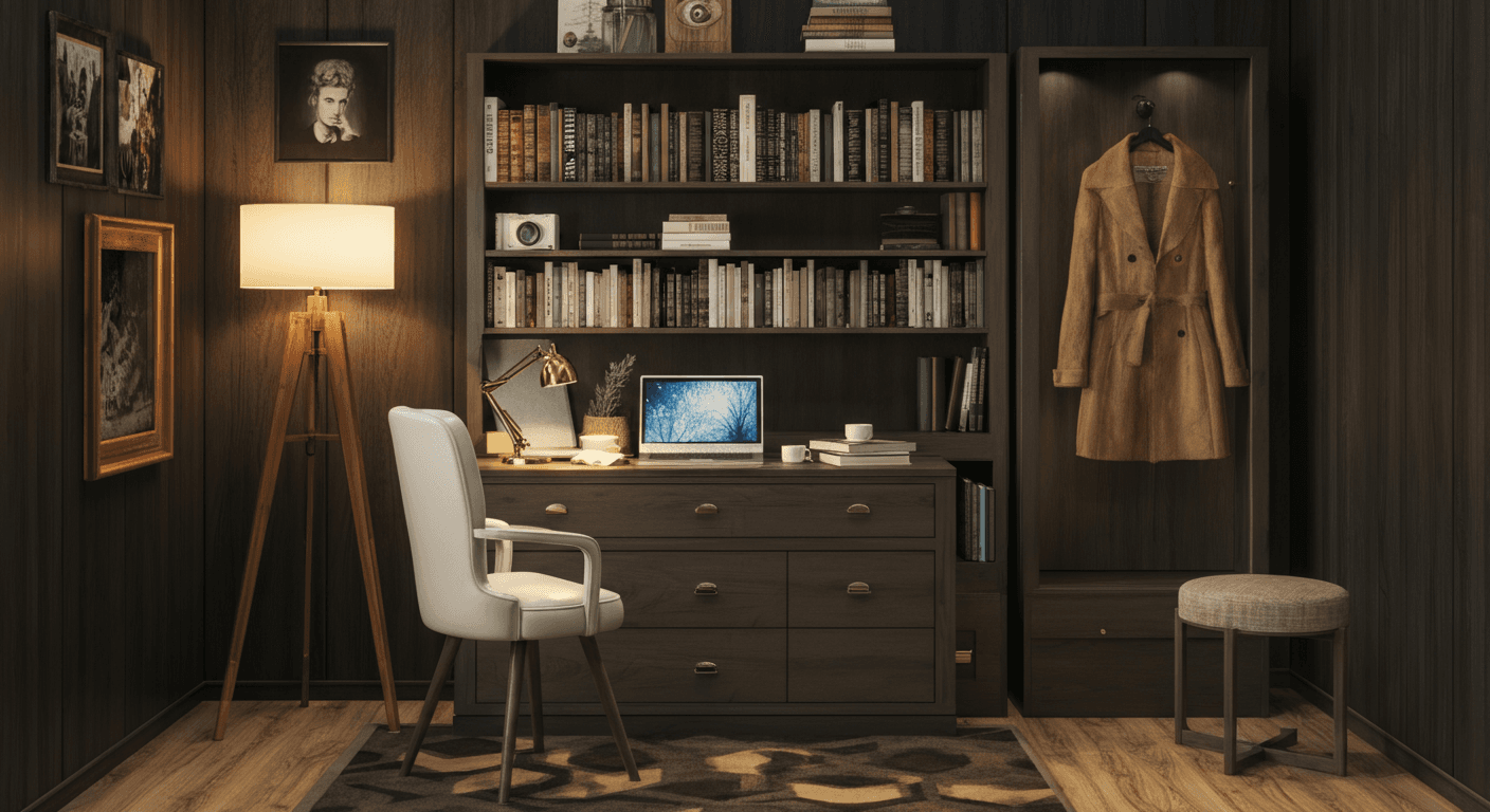 Finally, mind your spacing. Give your furniture room to breathe — an inch or two between the wall and your desk, or a clear surface with just one focal object. Luxury is as much about what you leave out as what you add.