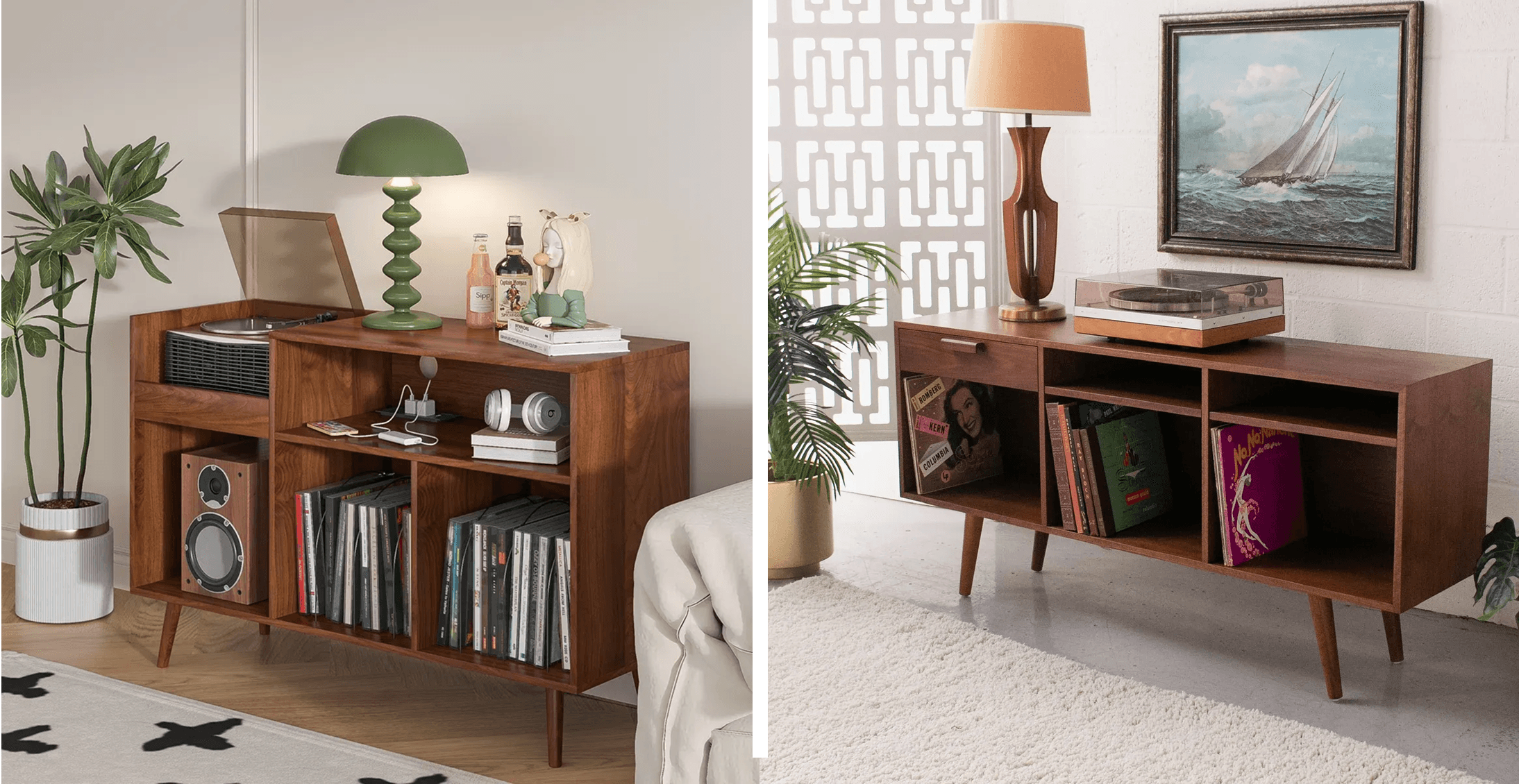 Our Audio Rack and Record Player Stand nails it. Natural finishes, clean lines, open shelving, and built-in USB ports make it equal parts vintage and modern.