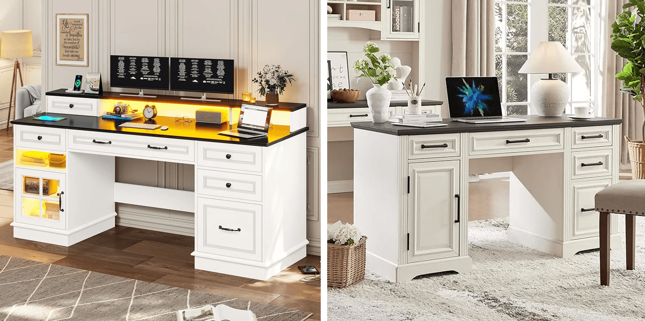 The Modern Computer Desk gets you. It has space for everything that matters, storage that makes sense, and a shape that looks curated, not cluttered.