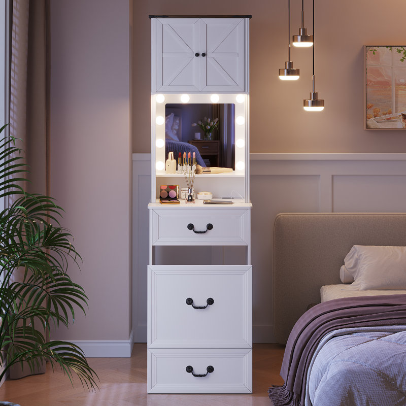 Discover the Gracie Oaks Small Makeup Vanity Set with LED Lights, perfect for small bedrooms and ...read more