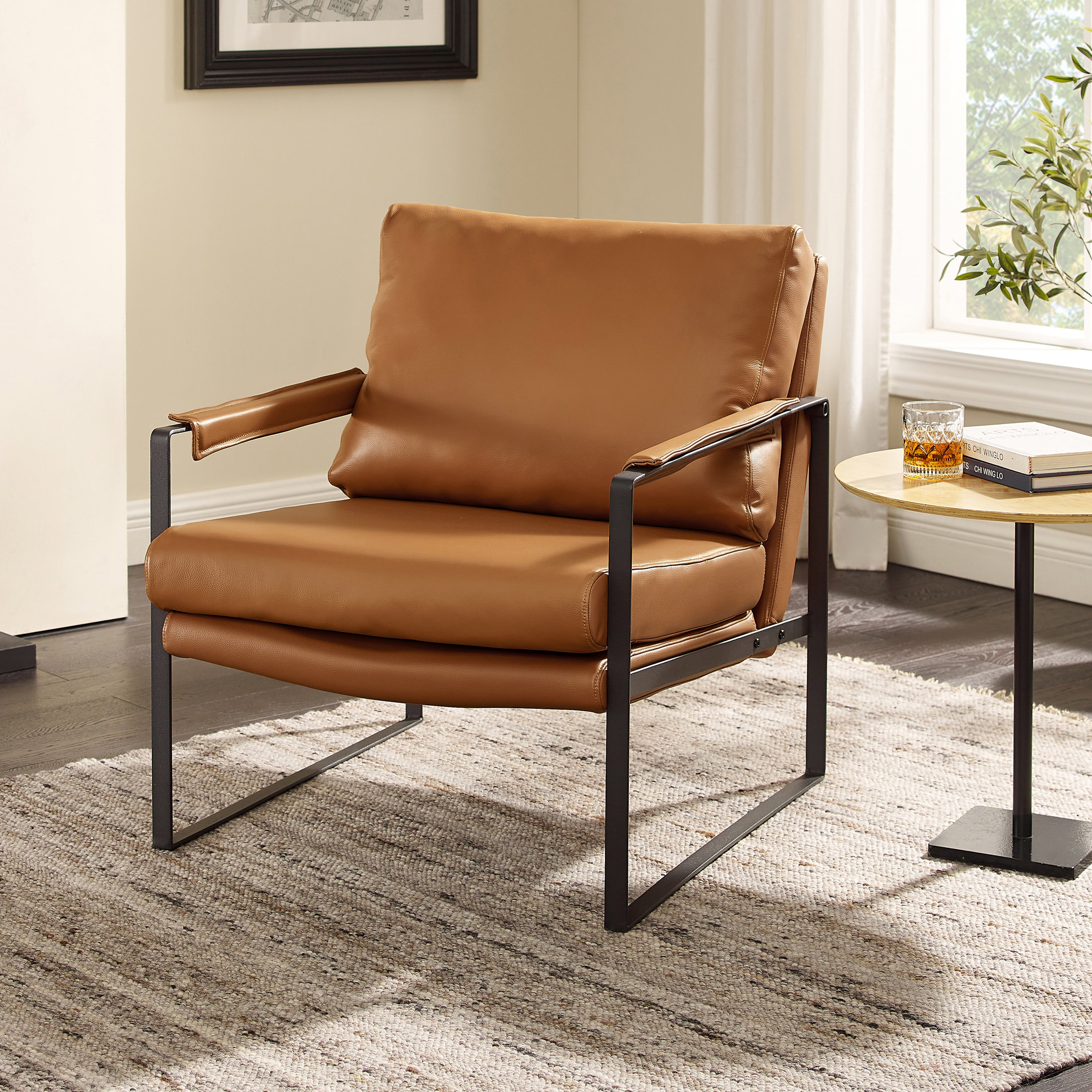 Discover the Mirsade 27.09'' W Leather Upholstered Accent Armchair, perfect for adding mid-centur...read more