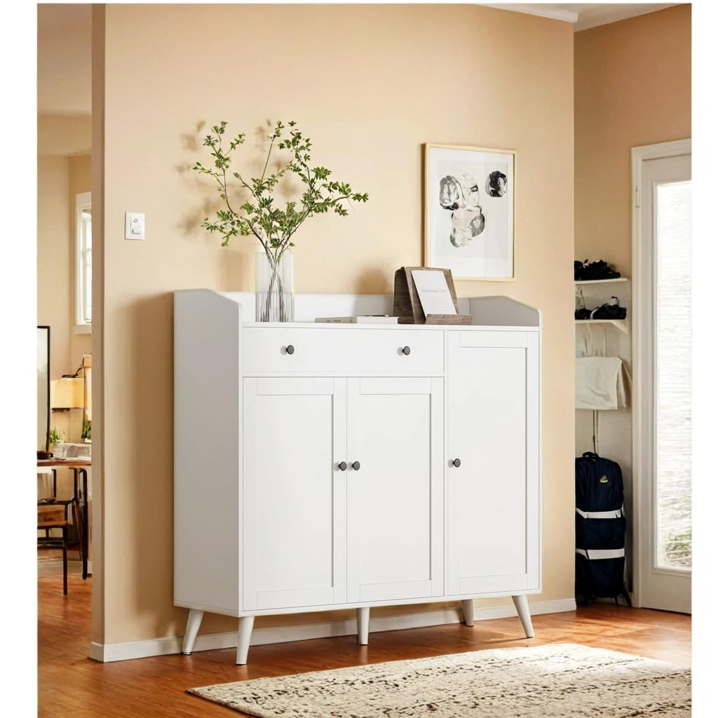 White Large Shoe Cabinet fit up to Shoe Size 16, Shoe Storage Cabinet with 3 Doors and 1 Drawer, Wooden Shoe Organizer for entryway
